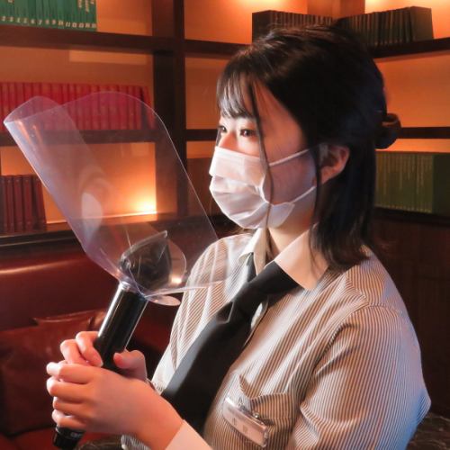 [Droplet prevention measures] ◆Microphone heads are disinfected after each use.Furthermore, we will provide disposable microphone covers to customers who request them free of charge. To prevent droplets from spreading when checking in and paying, we have installed acrylic panels that cover the entire cash register.